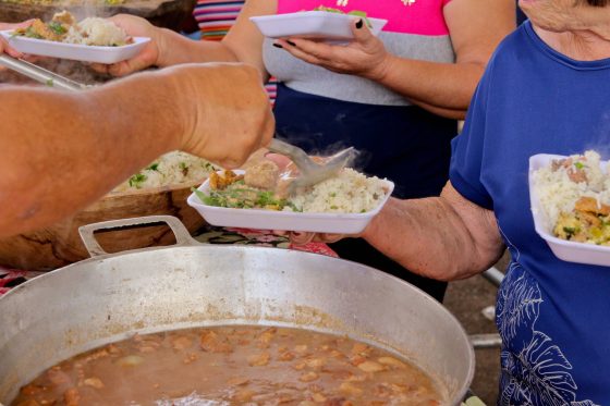 Feijão tropeiro, arroz carreteiro, paçoca de carne seca, feijão gordo, farofa de abobora e jiló foram algumas das delícias preparadas pelas comitivas do Clube do Cavalo e Edidany Barbosa, liderada pelo prefeito Rhenys Cambraia e pelo presidente do Sindicato Rural, Paulo Tolentino e, participação de voluntários, entre eles o padre Marino.