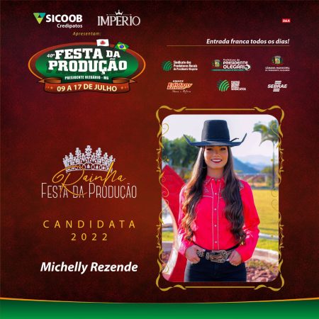 A noite desta terça-feira (12/07) será de disputa em Presidente Olegário. Três belas candidatas vão concorrer ao título de Rainha da 40ª Festa Produção. A cerimônia que vai definir a rainha da tradicional festa da cidade acontece no Parque de Exposições, às 20h.