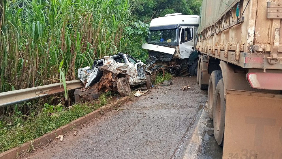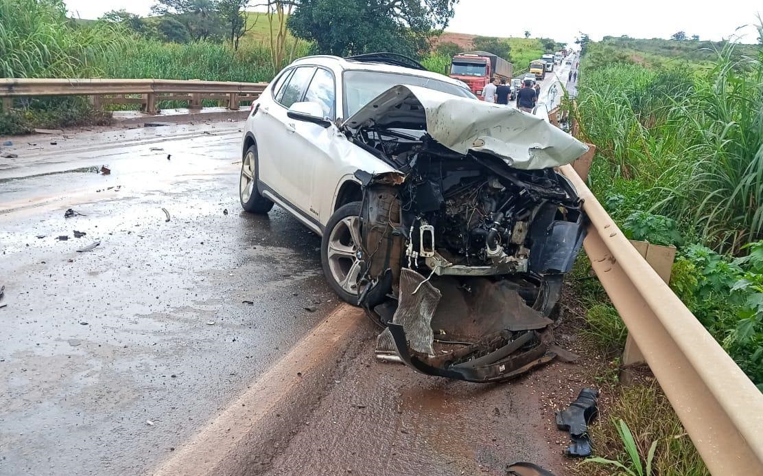 Os veículos BMW/X1 e Peugeot/Partrapid trafegavam pela rodovia quando o condutor do veículo BMW perdeu o controle direcional do veículo indo em direção aos veículos que transitavam no sentido contrário respectivamente Fiat/Toro, Fiat/Strada e birtem, no qual, para não se chocarem com o BMW/X1 pararam seus veículos na pista de rolamento sentido crescente, no entanto o condutor do bitrem não conseguiu evitar o choque dos veículos a sua frente.