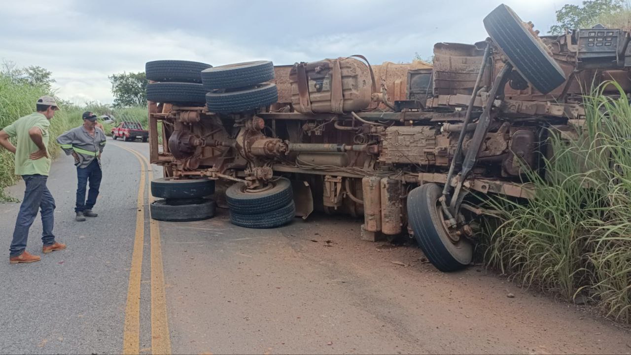 De acordo com informações preliminares, um caminhão da Prefeitura de Lagamar, carregado com terra, tombou na pista e acabou parando na contramão de direção. Com isso, o veículo atingiu um VW/Voyage que trafegava no sentido oposto, fazendo com que o carro de passeio saísse da pista.