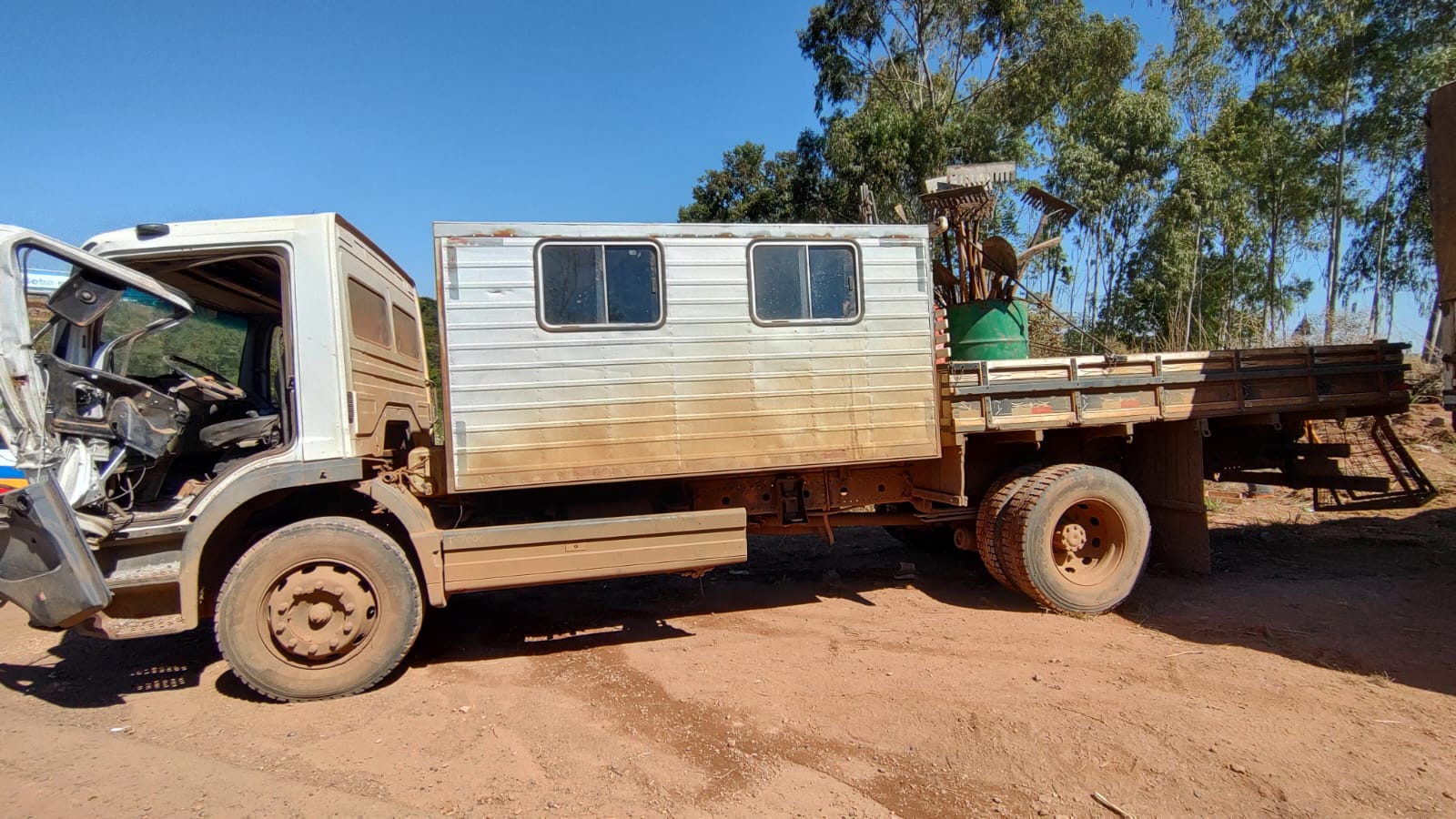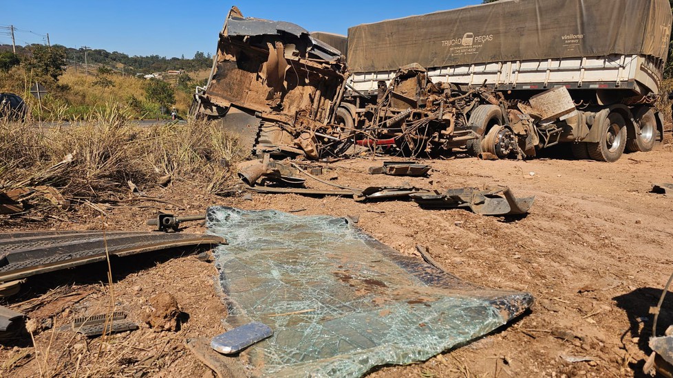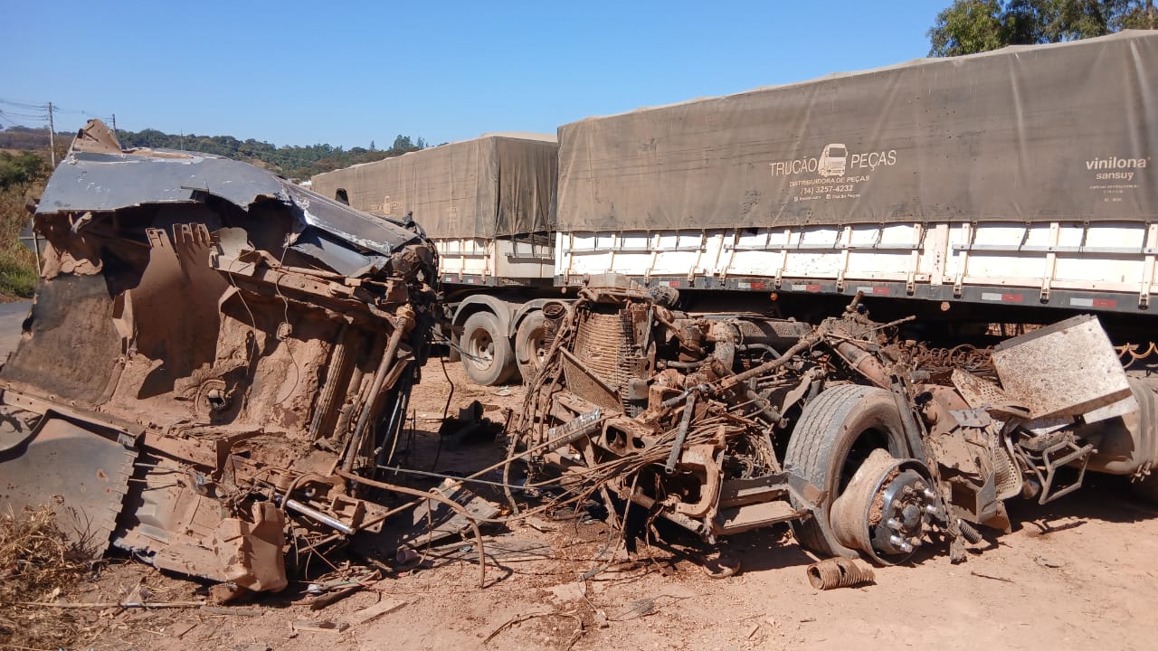 A cabine de um bitrem ficou destruída após um acidente, na manhã desta sexta-feira (01), na MGC354, próximo ao pesque e pague, em Patos de Minas. O veículo bateu em outros dois caminhões, que estavam parados na faixa de domínio. O motorista foi socorrido pelo SAMU.