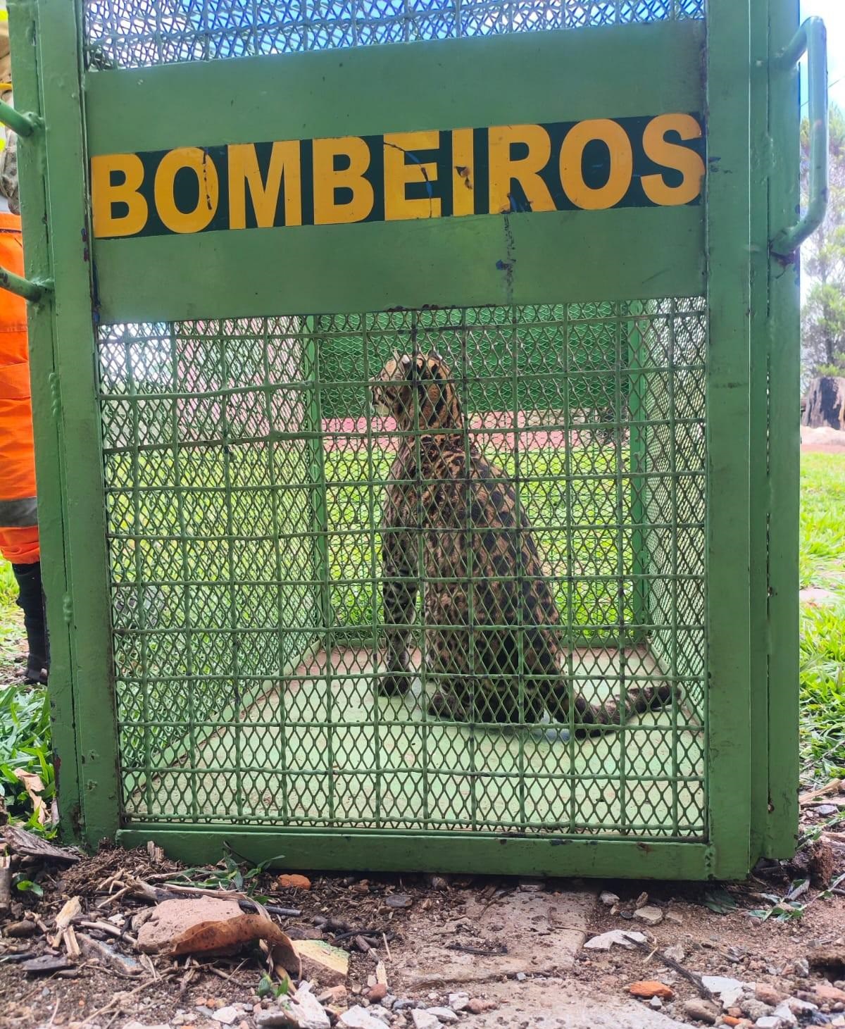Sem ferimentos visíveis, o felino não precisou ser levado para o CETRAS. Os bombeiros conduziram a jaguatirica para uma área de mata, sendo solta em seu habitat.