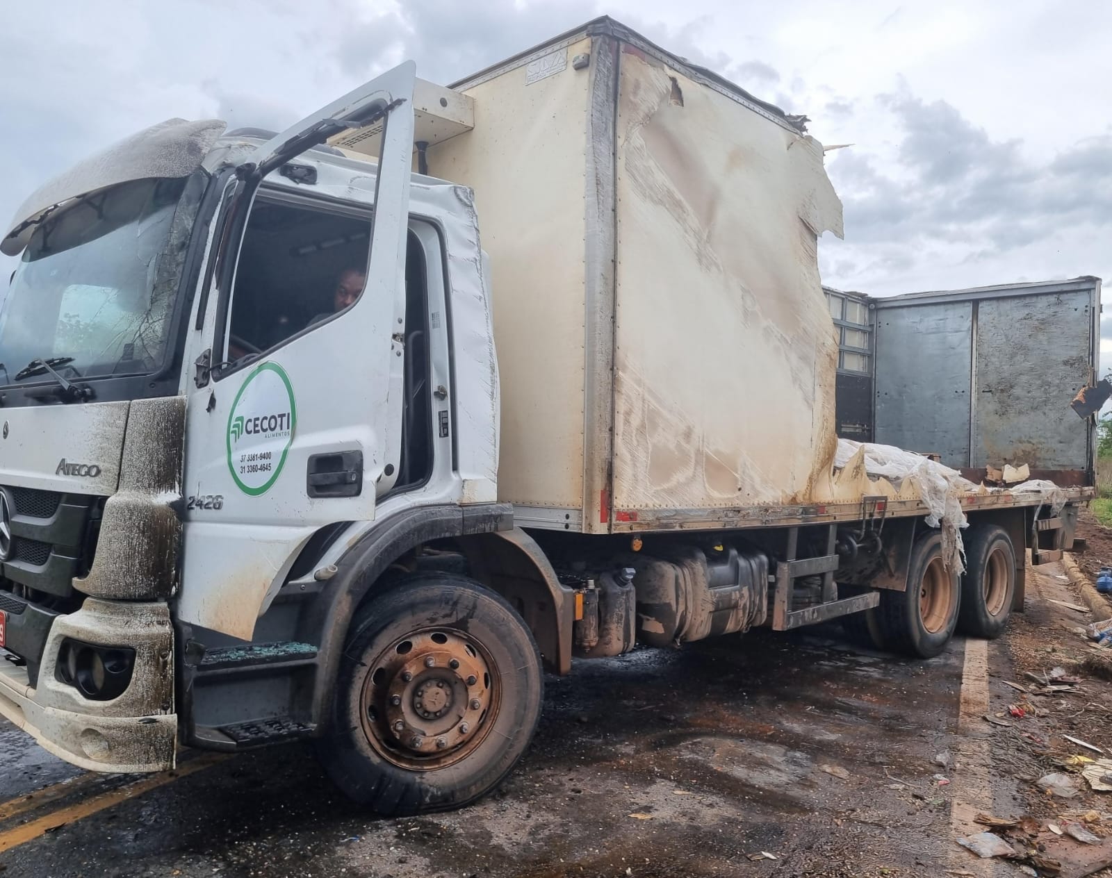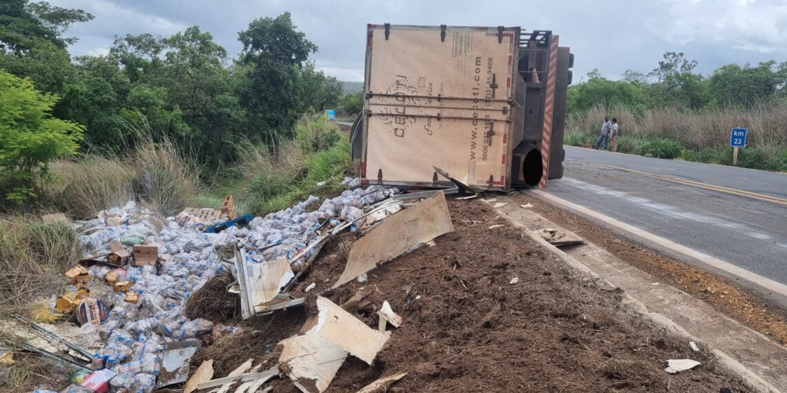 De acordo com informações da Polícia Militar Rodoviaria, por volta das 12h20, o veículo, placa de Cláudio-MG, seguia no sentido João Pinheiro/Presidente Olegário quando o motorista, L M.S de 32 anos, perdeu o controle na entrada de uma curva e o caminhão tombou na contramão.