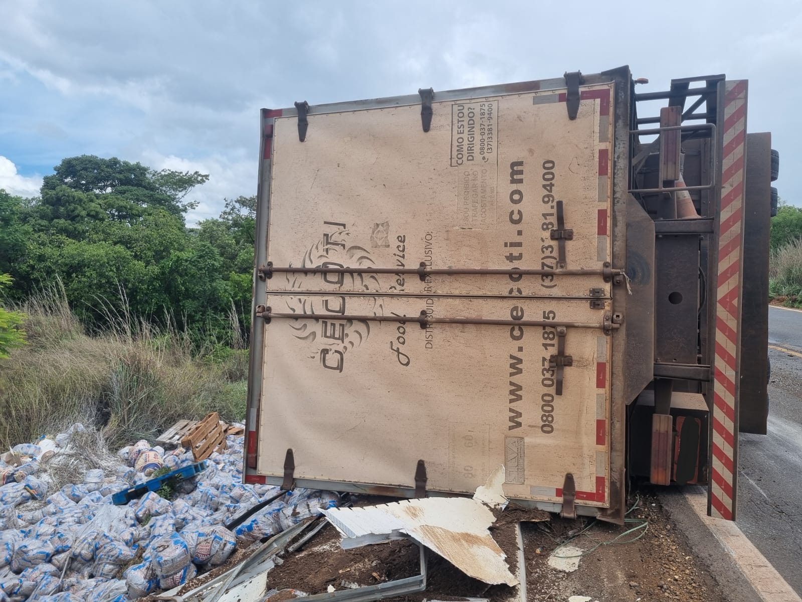 Não houve feridos. Parte da carga de feijão carioca, cerca de 11 toneladas, caiu na faixa de domínio devido ao rompimento da estrutura do baú. Alguns sacos foram danificados e a empresa responsável realizou o transbordo para outro caminhão.