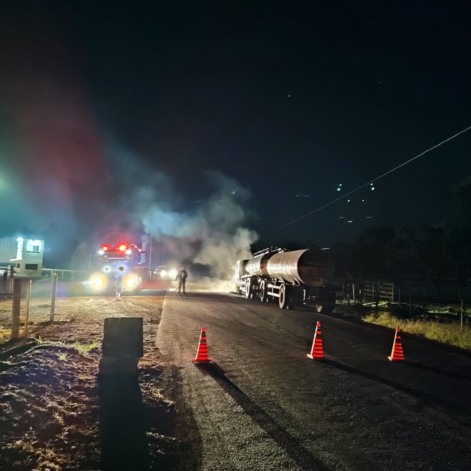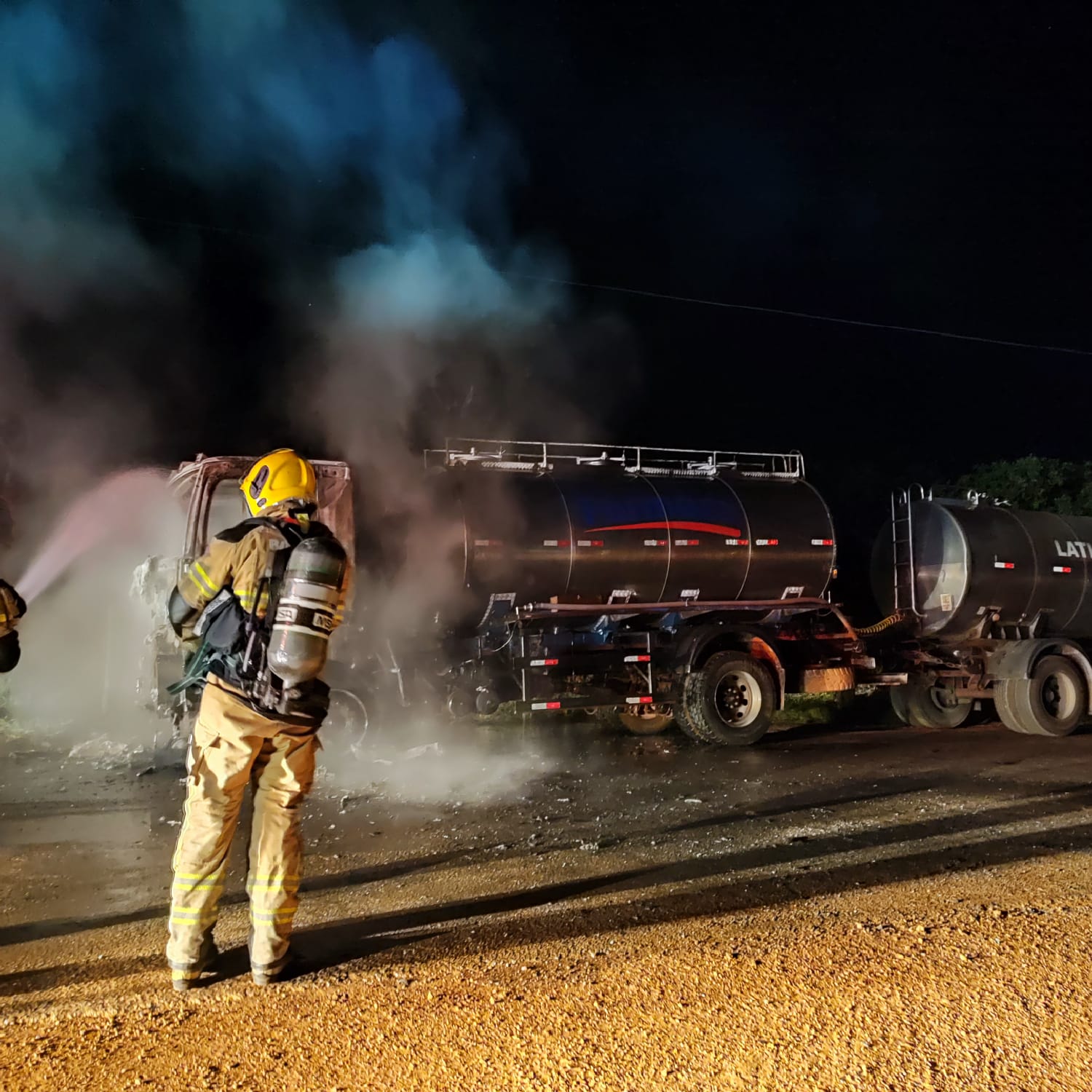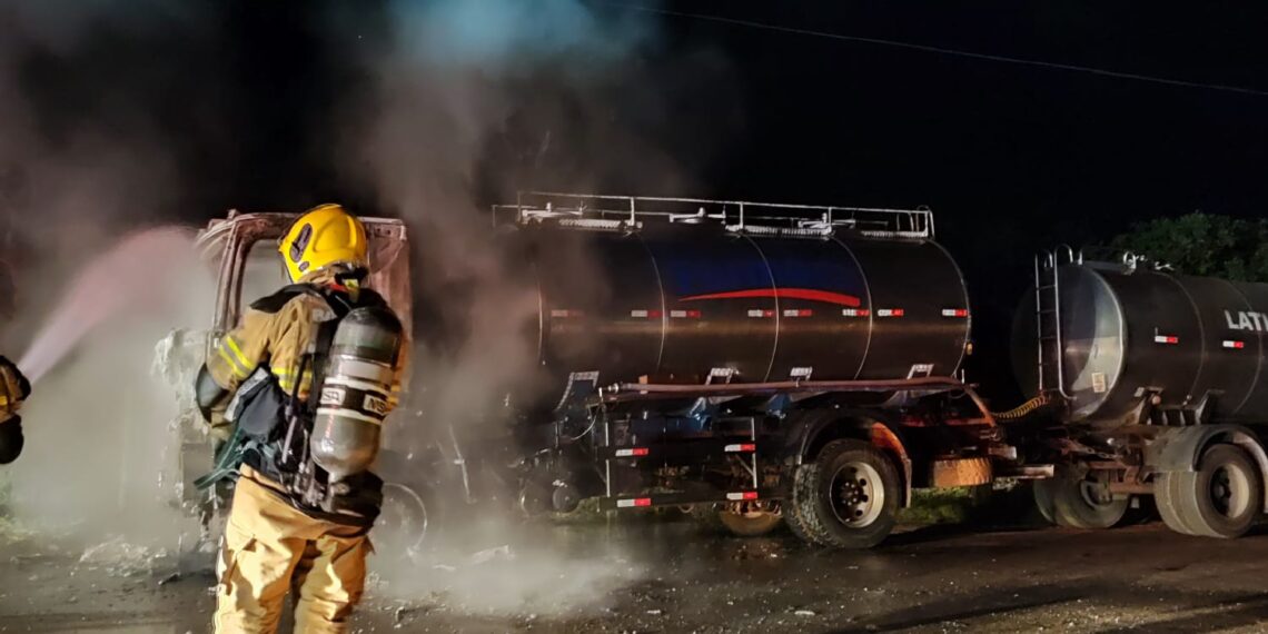 Caminhão tanque de leite pega fogo e mobiliza Corpo de Bombeiros na zona rural de Lagoa Formosa