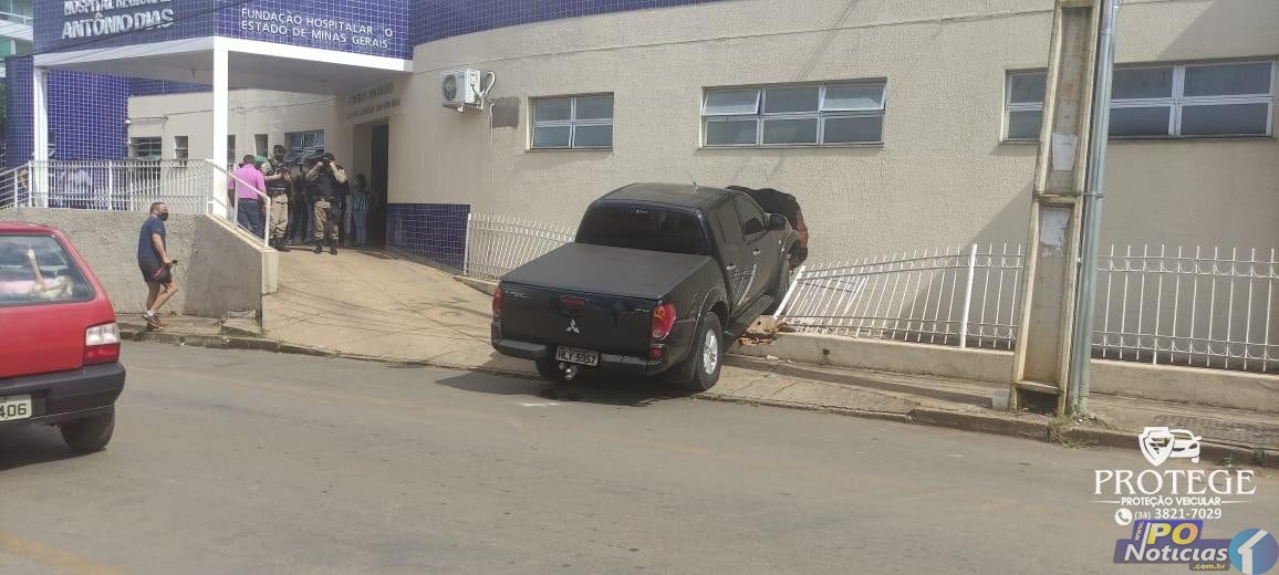 O acidente aconteceu na tarde desta sexta-feira (04), na Rua José dos Reis, Centro da cidade. A caminhonete L200 Triton foi parar na sala de emergência do Pronto Socorro do Hospital Regional, em Patos de Minas. Uma paciente em estado grave havia acabado de ser retirada da sala.