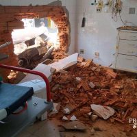 Sem controle, a caminhonete atravessou a rua, subiu o passeio, bateu na grade e derrubou parte da parede da sala de emergência. A sorte maior é que não havia nenhum paciente no local. Uma senhora que estava na sala havia acabado de ser levada para a UTI do Hospital Regional.