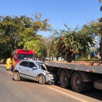 O VW/Gol entrou debaixo da traseira do caminhão prancha. A parte do capô ficou totalmente destruída. Felizmente, o motorista sofreu ferimentos leves. Uma unidade de resgate do Corpo de Bombeiros foi acionada e prestou socorro à vítima. A Polícia Militar registrou ocorrência.