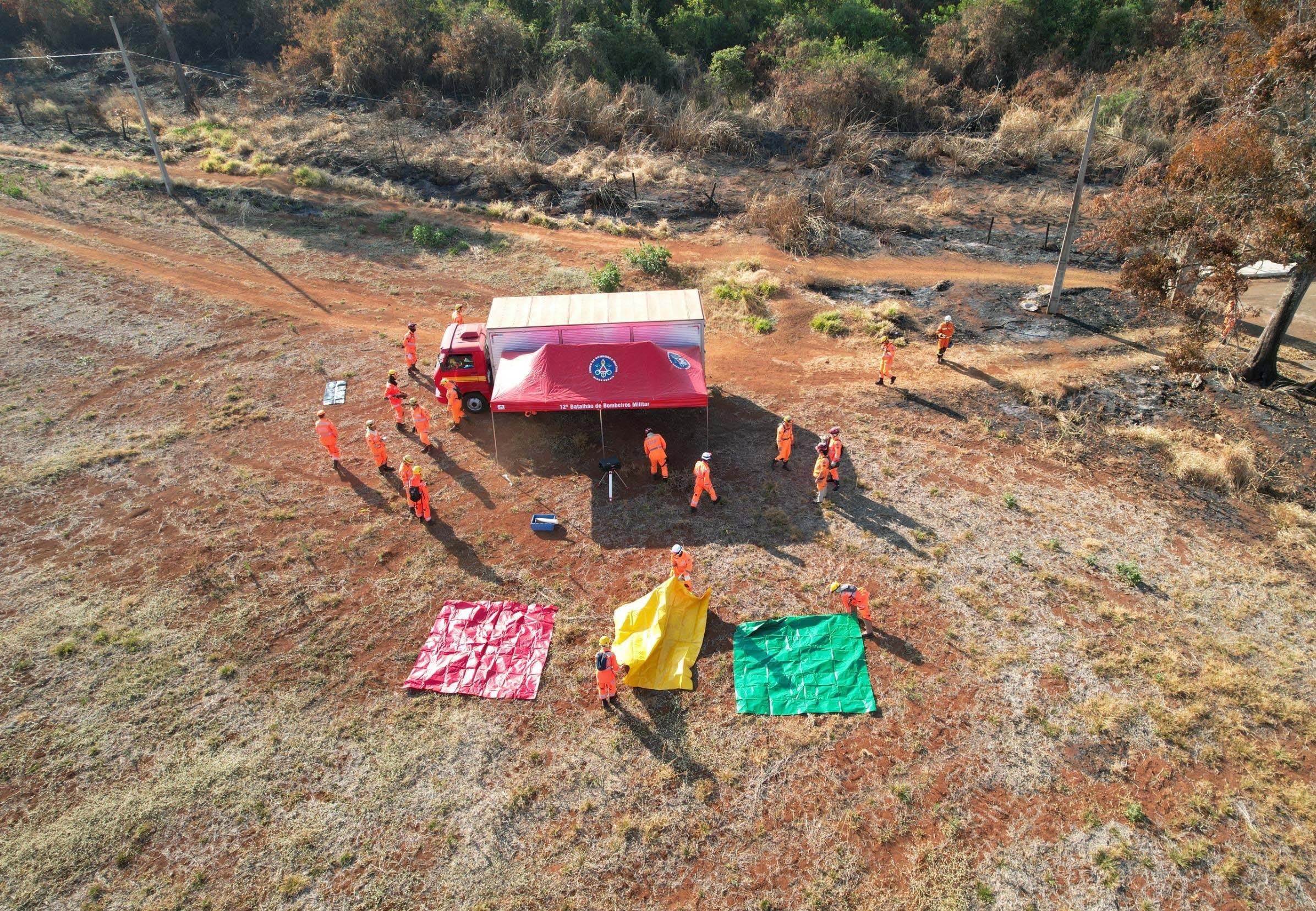 Além disso, foi montado um posto de comando no local, aos moldes do Sistema de Comando de Operações adotado em todas as ações de Defesa Civil no âmbito do estado de Minas Gerais. Com essa ação, o Corpo de Bombeiros de Patos de Minas se prepara para ocorrências mais graves e promove o aperfeiçoamento do seu aparato logístico e também dos militares.