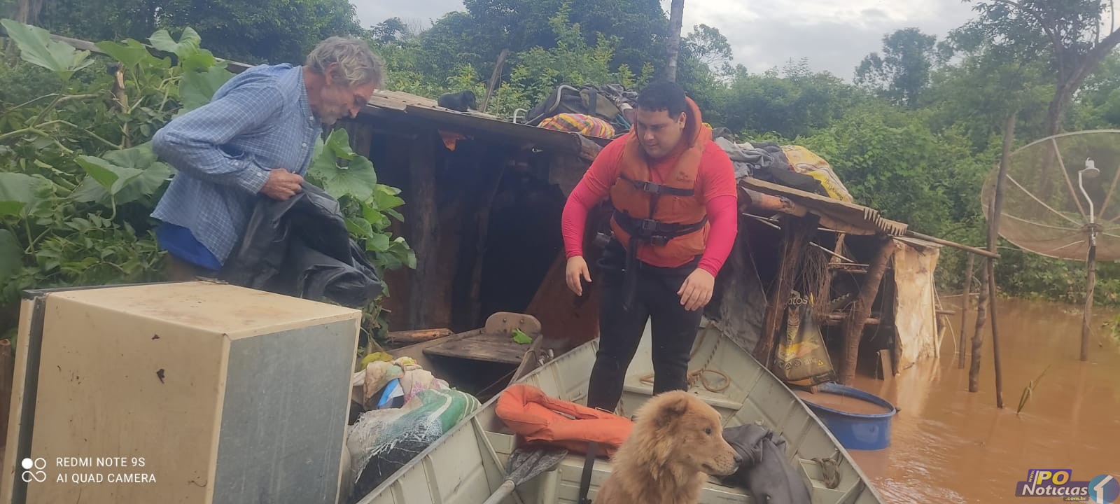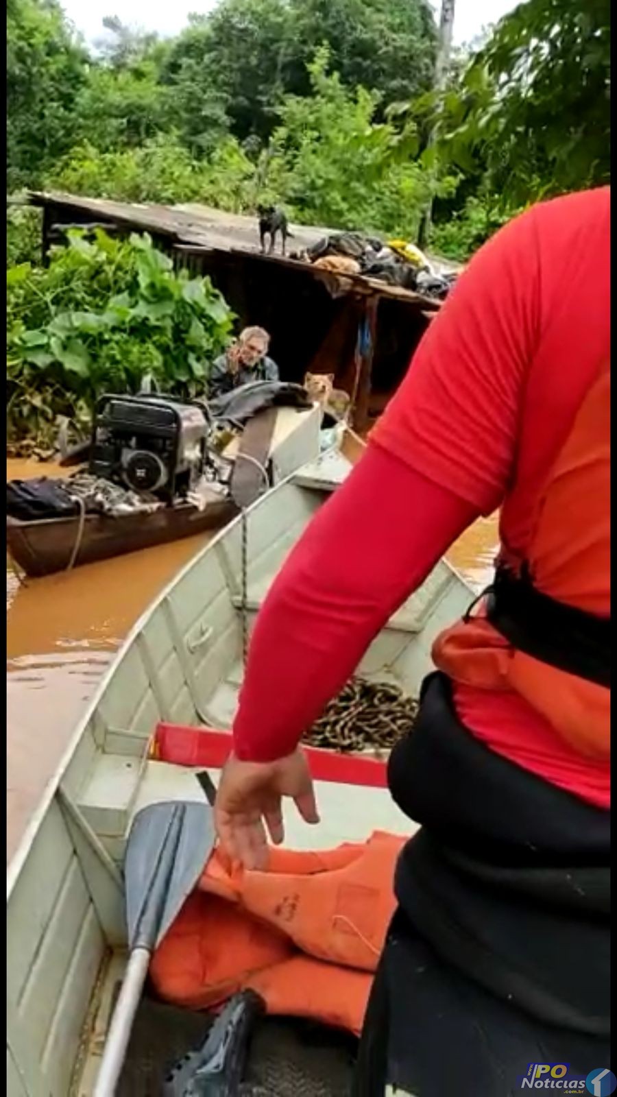 Com as referências de familiares, os militares conseguiram navegar e encontrar o local, que já estava todo tomado pelas águas e a vítima dentro de uma embarcação, ancorado ao lado da residência.