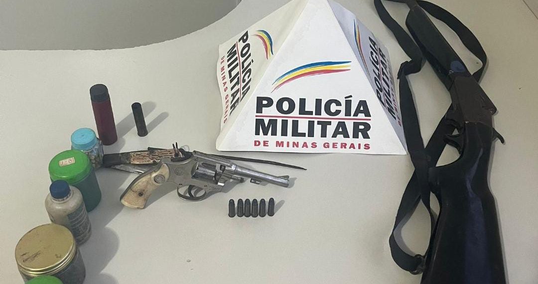Diante das informações, guarnições da PM se deslocaram até a referida fazenda onde lograram êxito em prender o suspeito. Os militares localizaram e apreenderam 01 revólver taurus calibre .32 municiado com 06 cartuchos intactos e 01 espingarda calibre .32 com 01 cartucho intacto.