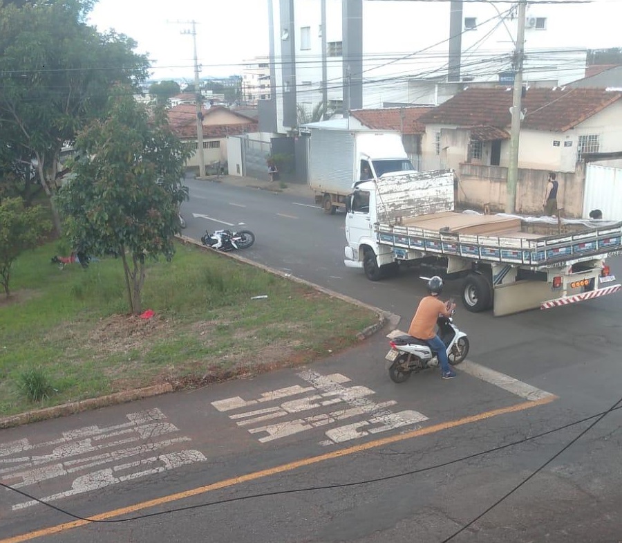 Dois jovens, de 18 e 20 anos, ficaram gravemente feridos em um acidente envolvendo uma motocicleta e um caminhão na tarde desta sexta-feira (27), no bairro Caiçaras, em Patos de Minas. Os jovens teriam fugido da Polícia Militar minutos antes.