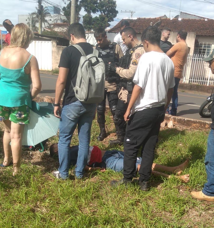 No local, os policiais encontraram os dois jovens caídos ao solo, em um terreno próximo à praça Zequito Rocha. A motocicleta estava caída com a placa levantada. Um caminhão também estava envolvido na batida.