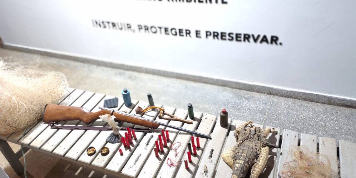 A Polícia Militar de Meio Ambiente prendeu um homem nessa quarta-feira (20) por caça e pesca predatória na região do Barreiro, em Lagoa Grande. A prisão aconteceu após uma denúncia anônima. Os policiais encontraram arma, munições e até a carcaça de um jacaré, animal silvestre proibido de ser caçado.
