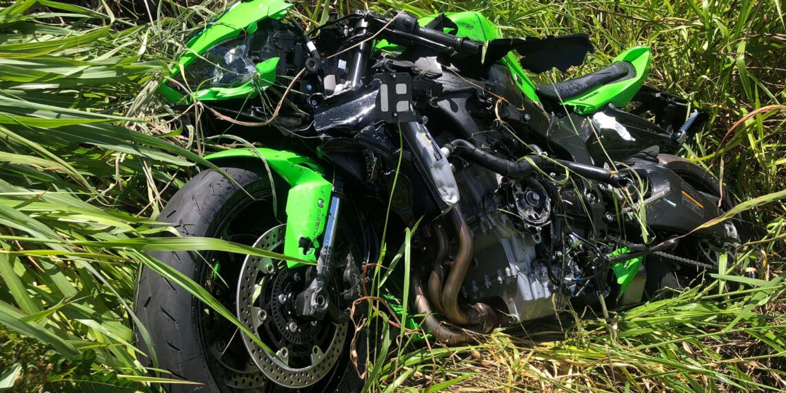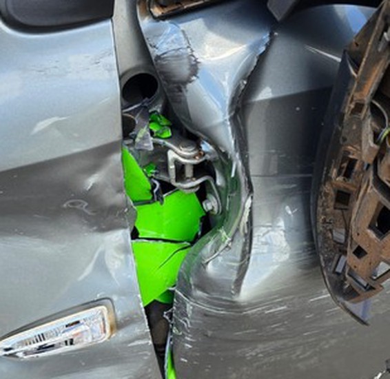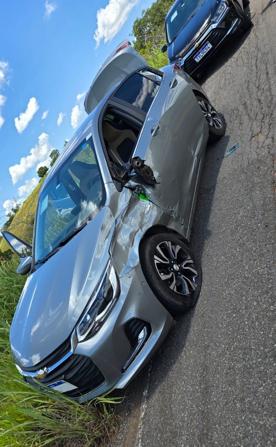 Após a batida o motociclista ficou caído na rodovia. Já a moto foi arremessada em uma ribanceira. Os ocupantes do carro não se feriram.