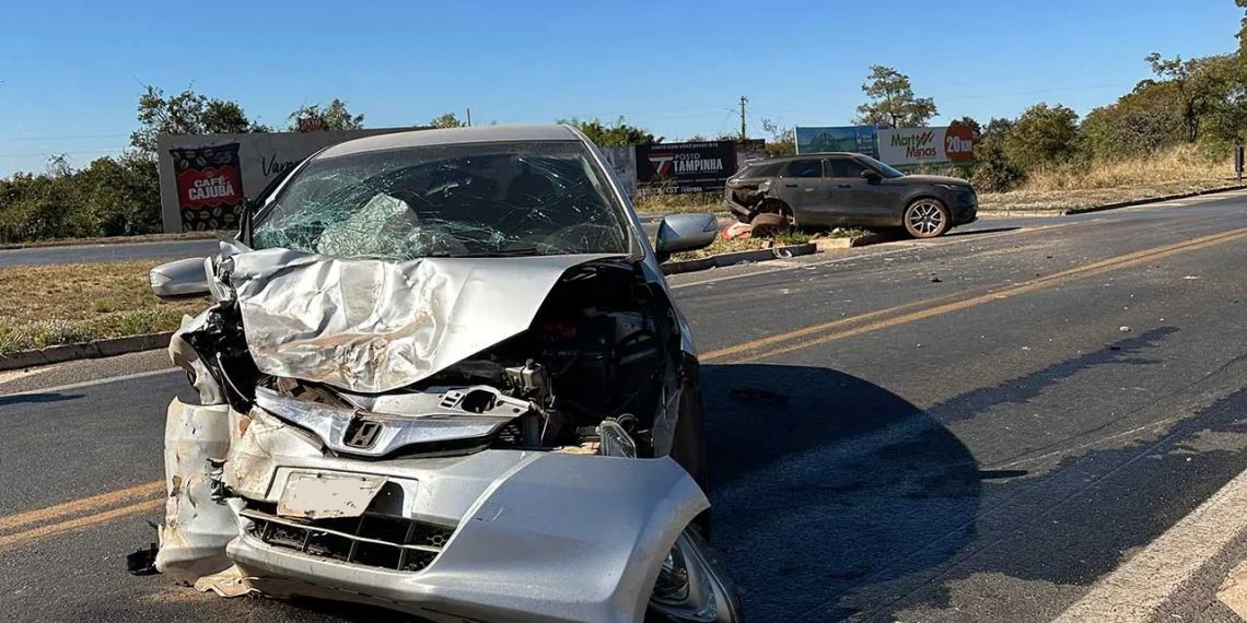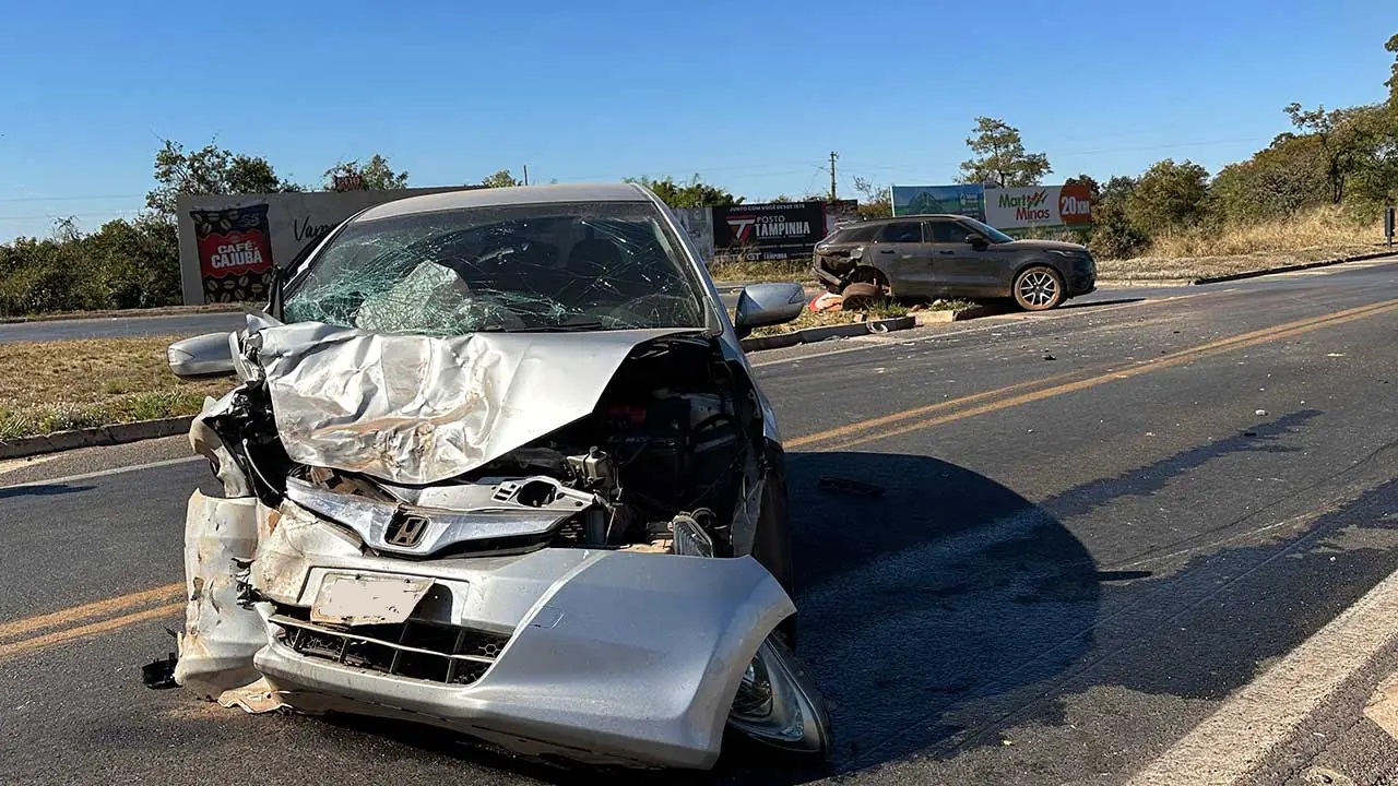 Uma colisão envolvendo um Honda Fit e uma Range Rover Velar foi registrada na tarde desta segunda-feira (22), no trevo da BR-040 com a MG-410, em Lagoa Grande.
