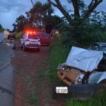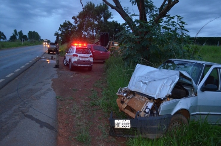 Um motorista de 87 anos da cidade de Lagoa Formosa ficou ferido após o veículo que ele conduzia atingir a traseira de uma pá carregadeira. A colisão ocorreu por volta das 06h00 da manhã próximo à ponte sobre o Córrego Babilônia, quando o condutor Jair Alexandre Braga (Jair do Xande) seguia pela rodovia sentido à comunidade de Campina Verde e não teria notado a presença da máquina que trafegava pelo acostamento.