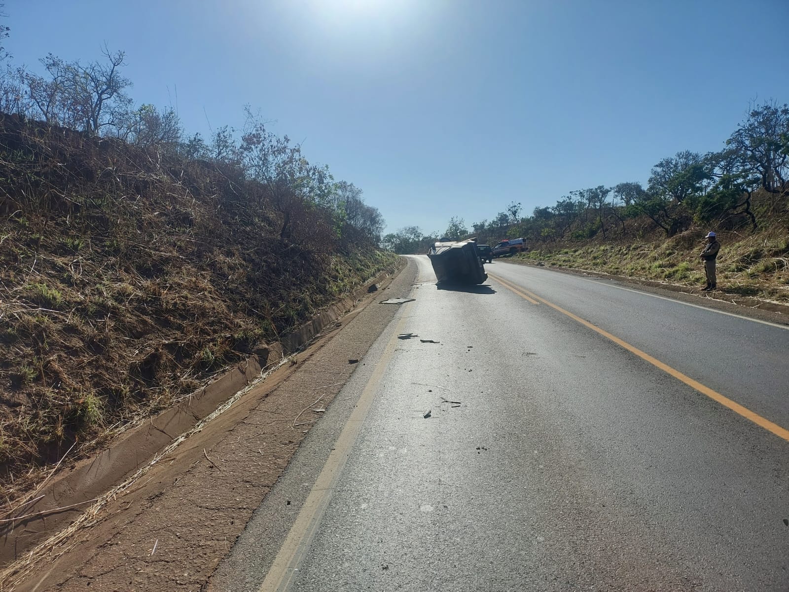De acordo com informações da Polícia Militar Rodoviária, por volta das 6h55, a guarnição deslocou até a rodovia, onde a equipe foi informada que um veículo GM/ MONZA de cor cinza, emplacado em Abadia dos Dourados/ MG, ao chegar em um morro e curva acentuada à esquerda, o condutor de 42 anos perdeu o controle direcional, saindo da pista à esquerda e capotando várias vezes.