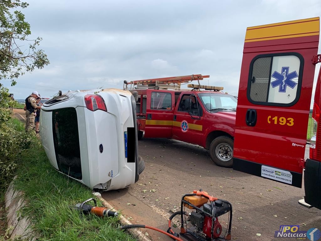 O capotamento aconteceu no km 234 da BR 352, próximo à entrada do Aeroporto Municipal. O Corpo de Bombeiros foi acionado e encontrou o motorista no interior do veículo. Ele estava consciente e orientado, aparentando cortes na face e membros superiores.