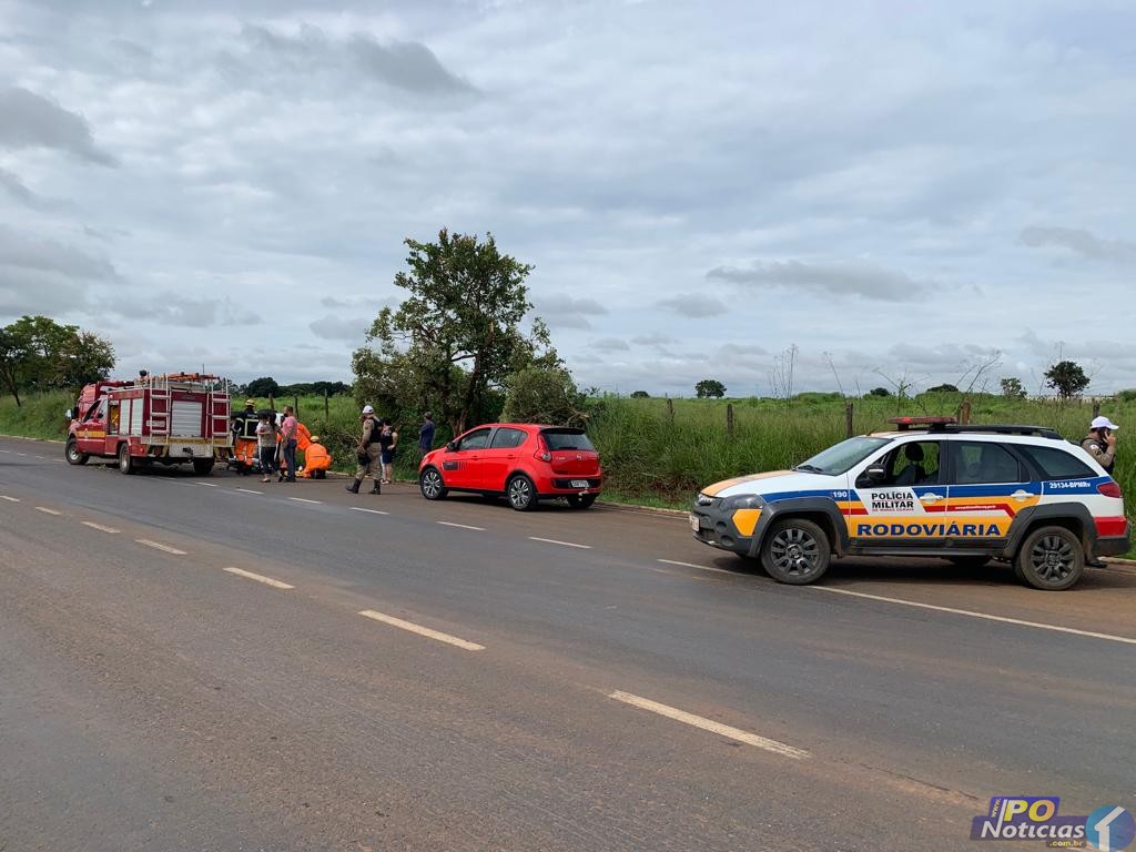 Segundo os bombeiros, a vítima relatou que seguia de Lagoa Formosa a Patos de Minas, quando dois animais não identificados, cruzaram a pista. Ao tentar desviar, perdeu o controle do veículo e veio a capotar. O veículo Ford/Ka parou tombado na pista.