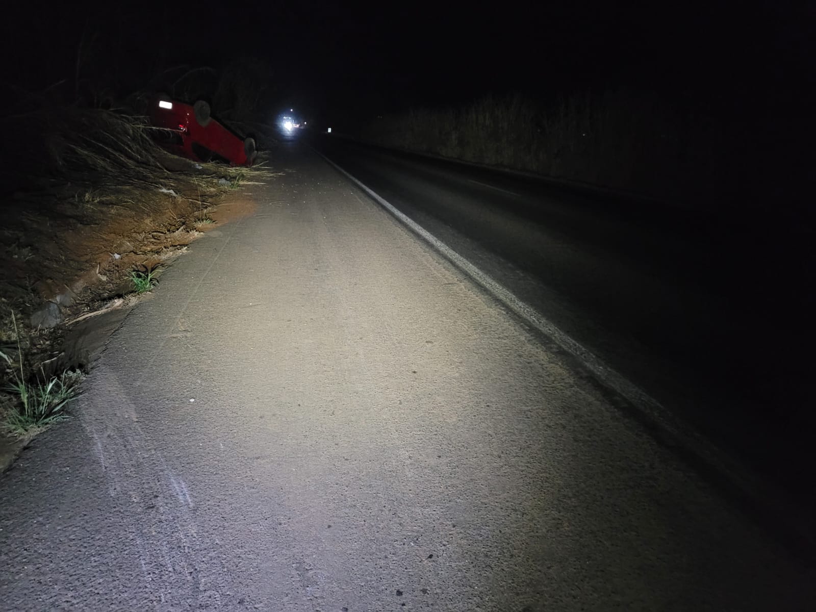 De acordo com informações da Polícia Militar Rodoviária (PMRv), os militares foram acionados para atender uma ocorrência de veículo fora da pista. Ao chegarem ao local, por volta das 21h, encontraram um veículo Ford Ka, com placas de Contagem, capotado em uma área às margens da rodovia.