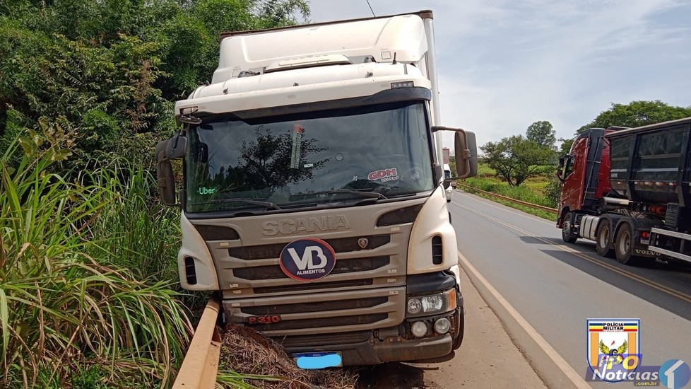 Um acidente foi registrado pela Polícia Militar Rodoviária no início da tarde desta sexta-feira (18) na BR 352 em Lagoa Formosa. O motorista de um caminhão baú perdeu o controle direcional ao frear em uma descida e acabou atingindo o guard rail. O caminhão estava carregado com sacos de ração. O motorista não se feriu.
