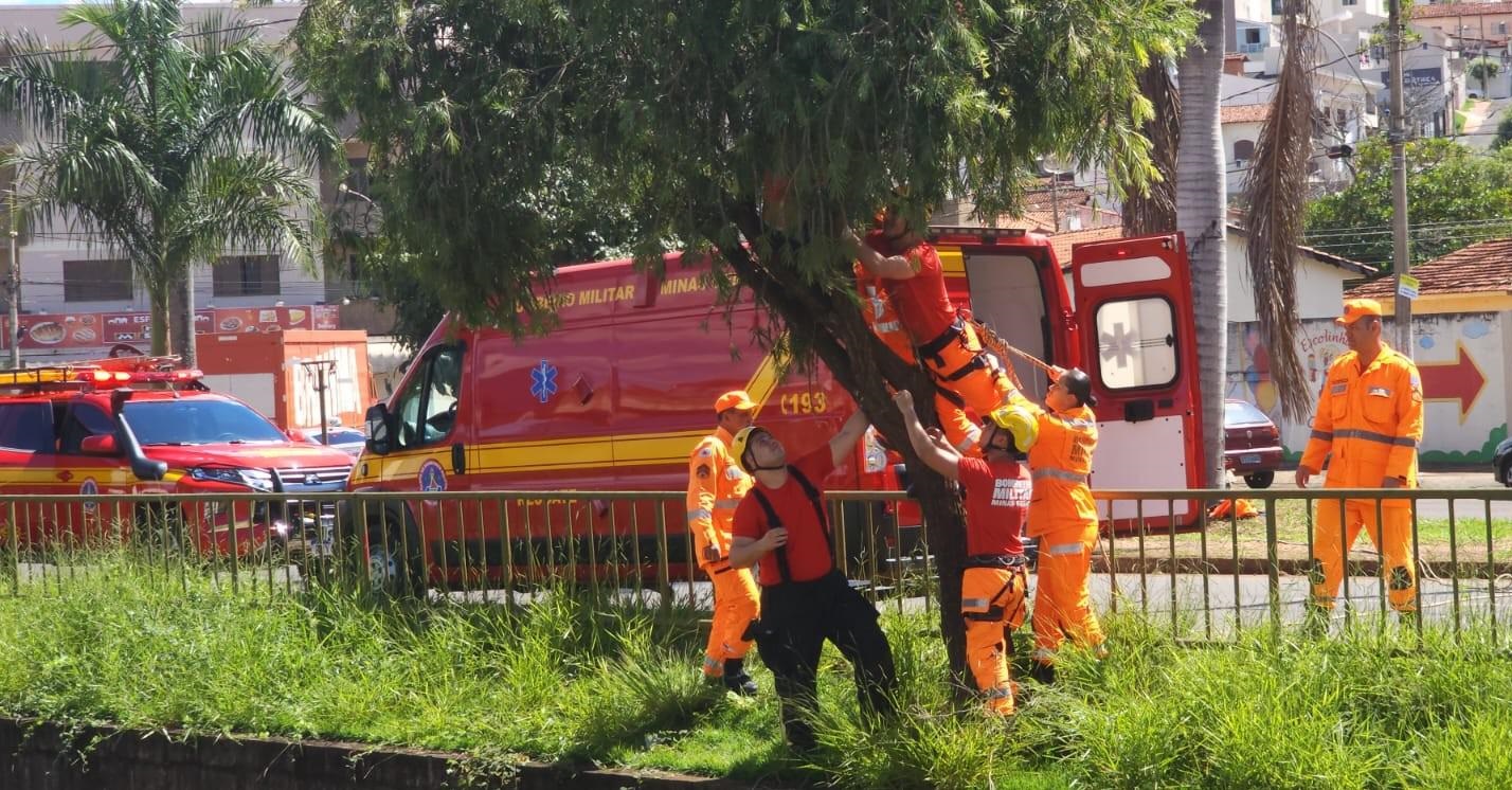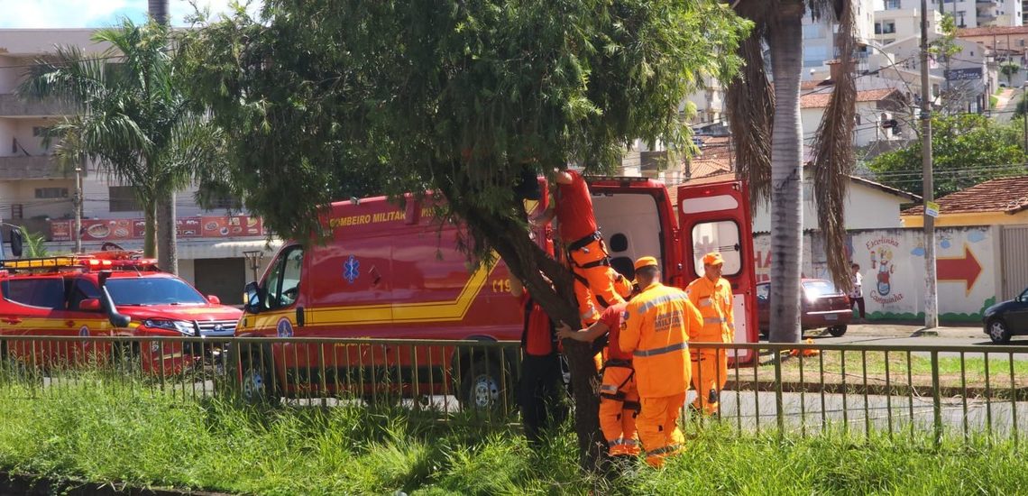 Patos de Minas: Bombeiros resgatam mulher de cima de árvore às margens do Córrego do Monjolo