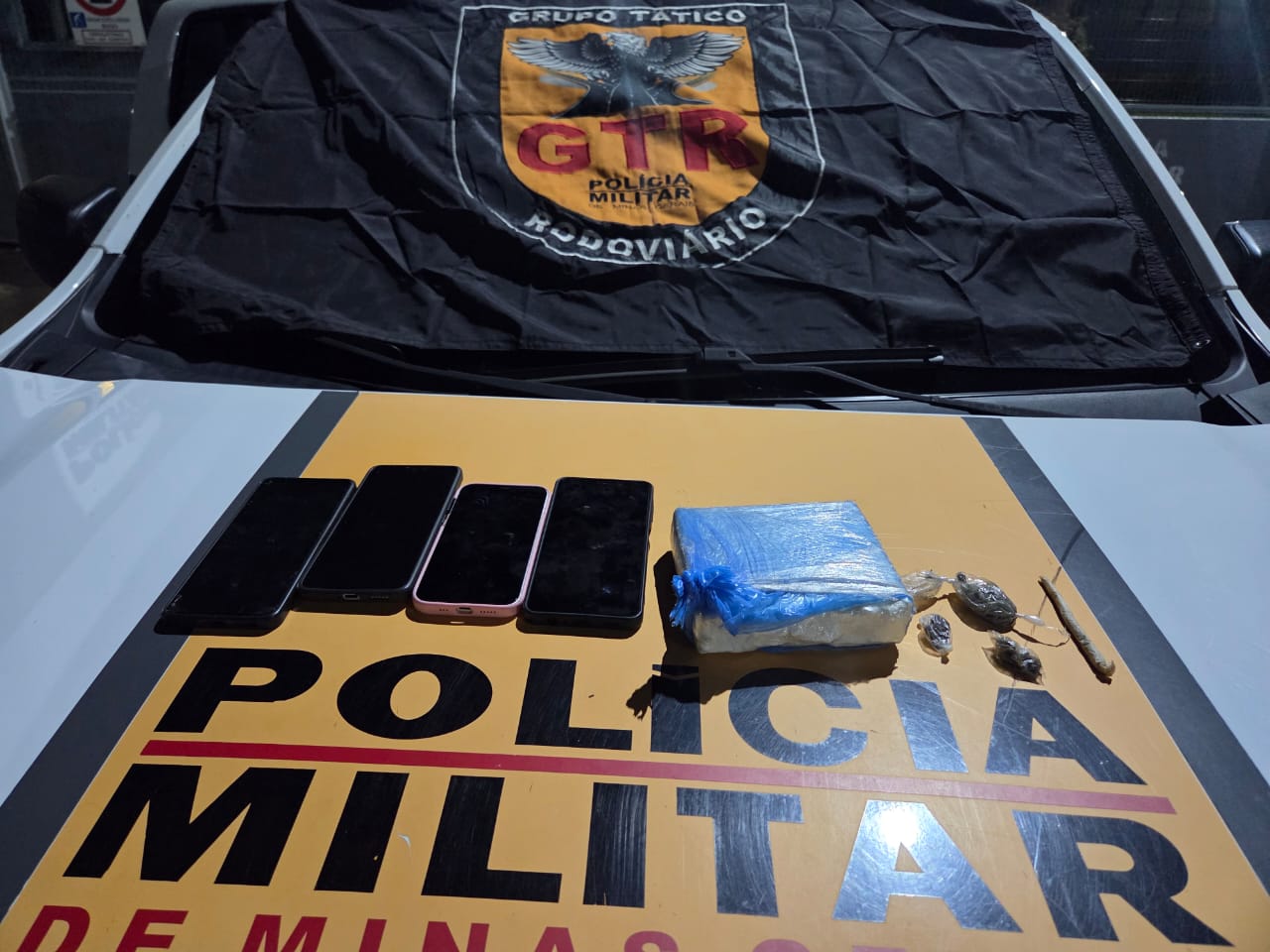 Na noite de terça-feira (23), a Polícia Militar Rodoviária apreendeu uma quantidade de drogas estimada em R$ 40 mil na MGC-354, em Patos de Minas. Três jovens, com idades de 18, 19 e 22 anos, foram detidos e levados à Delegacia de Polícia Civil.