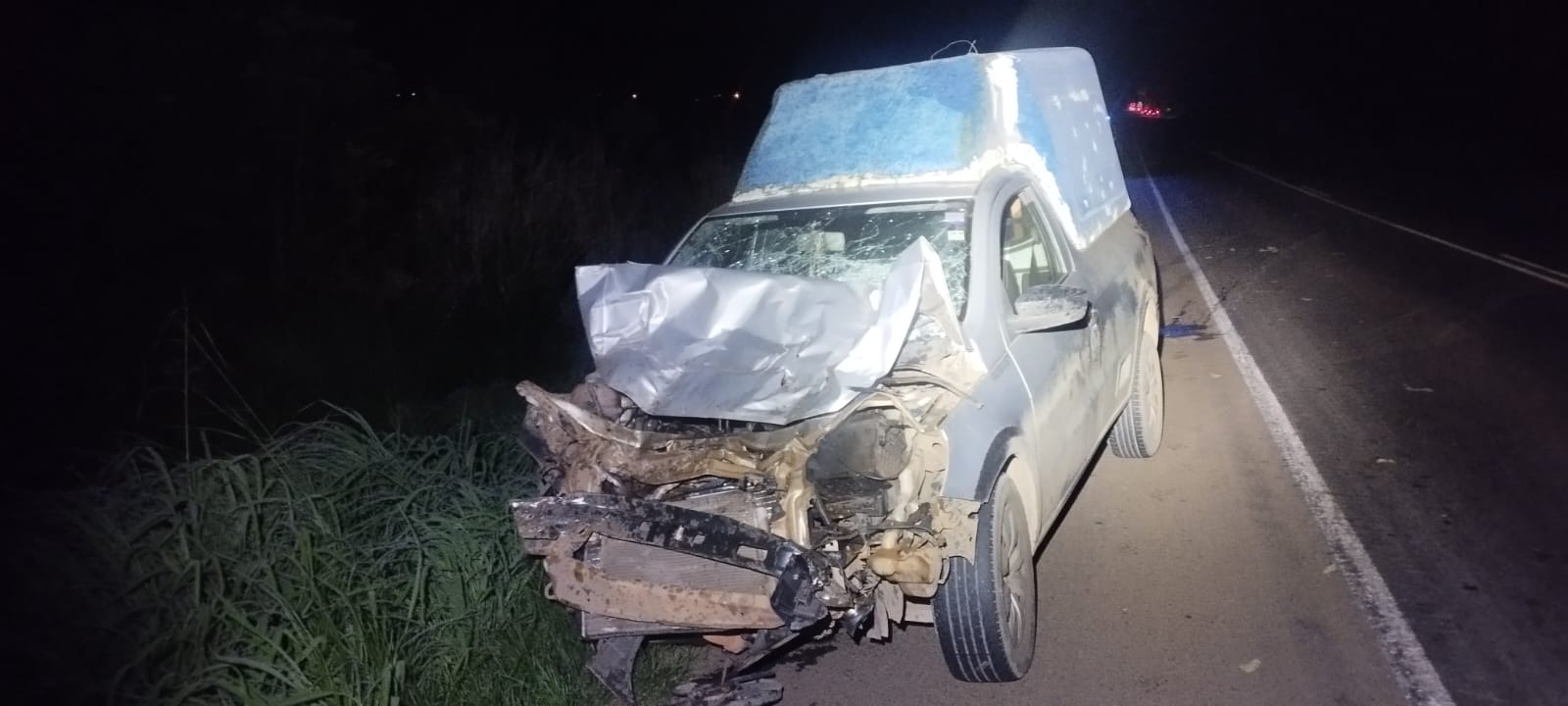No local a equipe deparou com uma caminhonete I/Toyota Hilux, emplacada em Matutina/MG, que estava fora da pista, na faixa de domínio da rodovia e um uma caminhonete VW Nova Saveiro, emplacada em Patos de Minas/MG, que estava com parte na pista e no acostamento.