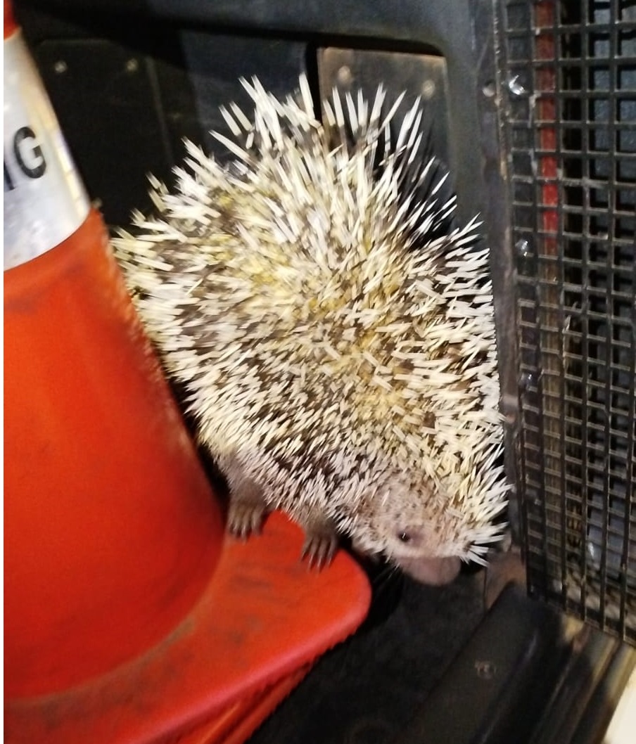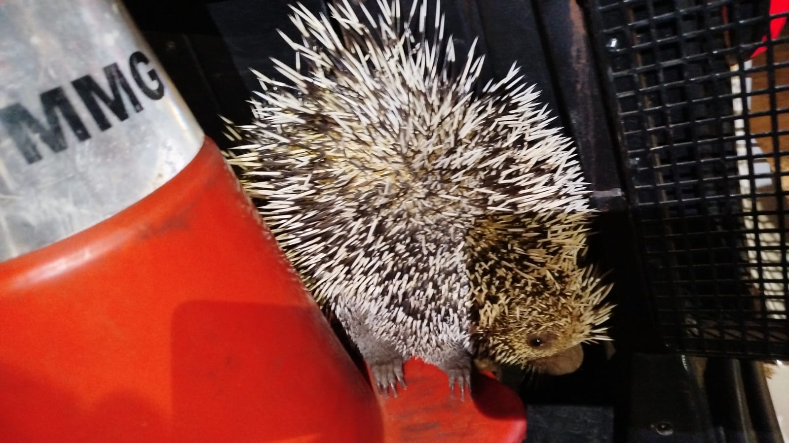 Policiais Militares de Presidente Olegário resgataram um porco-espinho no bairro Barro Preto, em Presidente Olegário, na noite desta sexta-feira (24).