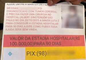 As outras duas casas paroquiais negaram a solicitação do homem, mas ele teria se posicionado em frente as igrejas, no momento das celebrações, e pedido as doações. O homem entregou panfletos informando que o filho foi diagnosticado com tumor cerebral e que precisa fazer uma cirurgia no Hospital Albert Einstein, em São Paulo. O panfleto ainda diz que o garoto teria que ficar 90 dias internado, o que custaria R$100.000,00. O homem pedia doações em Pix para um número de celular do DDD 98, que é do Maranhão.
