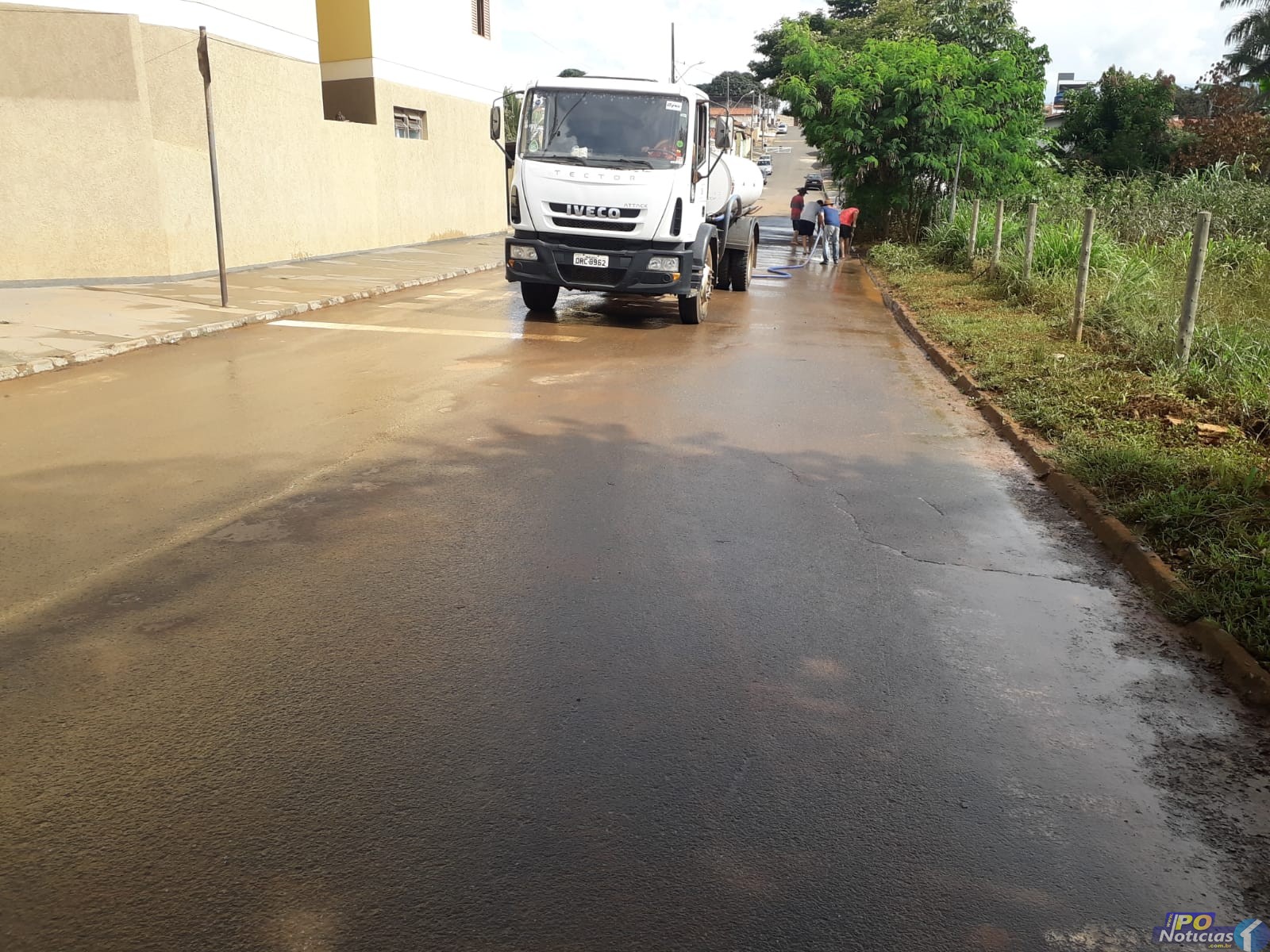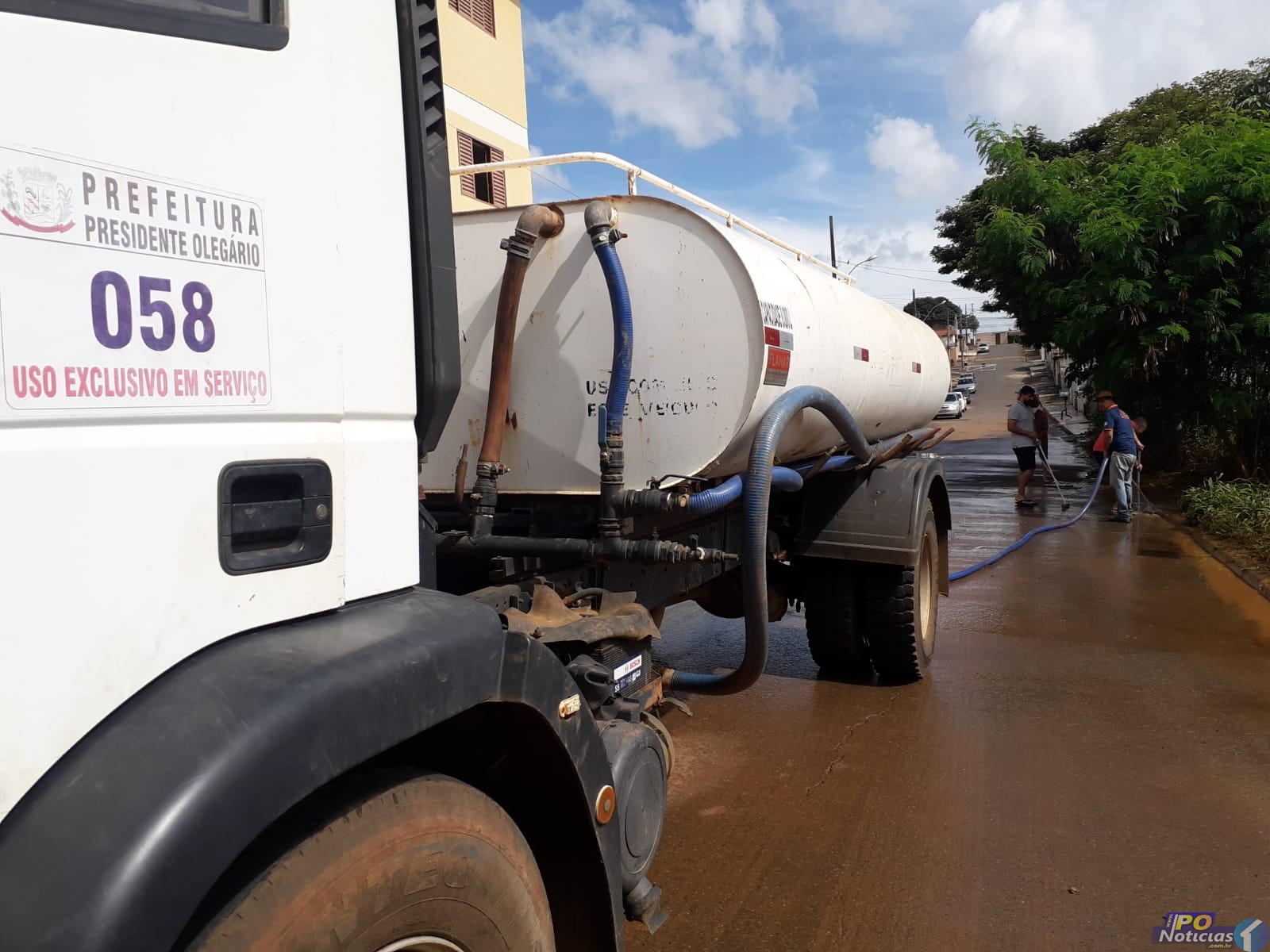 Funcionários da Secretaria de Obras com ajuda de voluntários trabalharam desde a manhã deste sábado (05/02) para amenizar os estragos causados pelas fortes chuvas que caíram durante a madrugada, em Presidente Olegário.