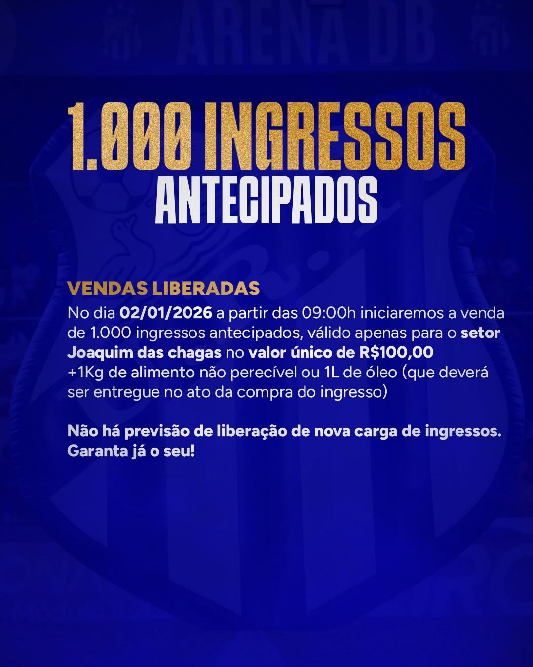 O clube informou que não há previsão de uma nova liberação de ingressos promocionais, por isso os torcedores devem aproveitar a oportunidade. No dia do jogo, os ingressos serão comercializados a R$ 200,00 (inteira) e R$ 100,00 (meia).