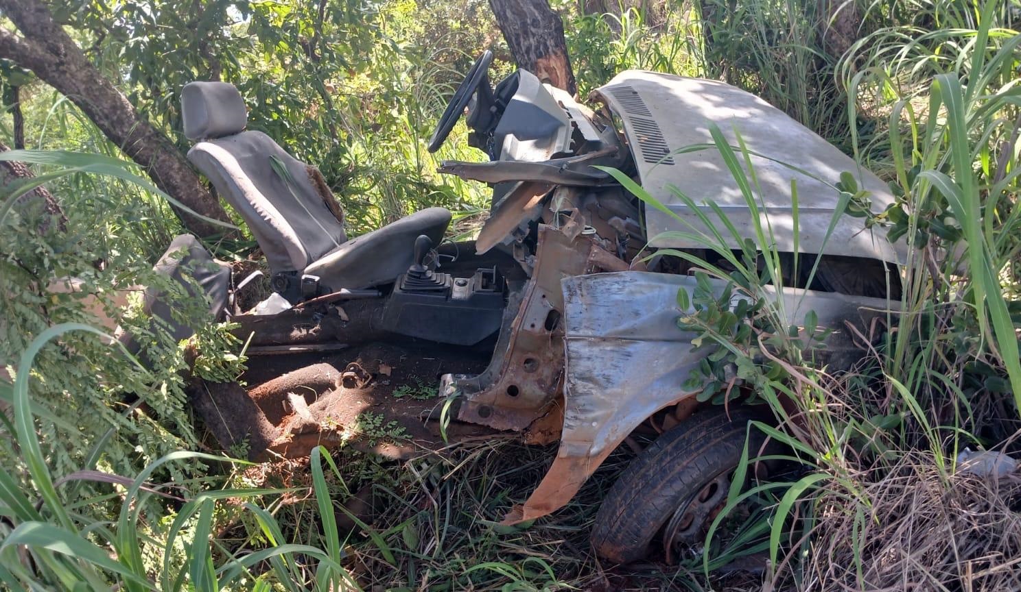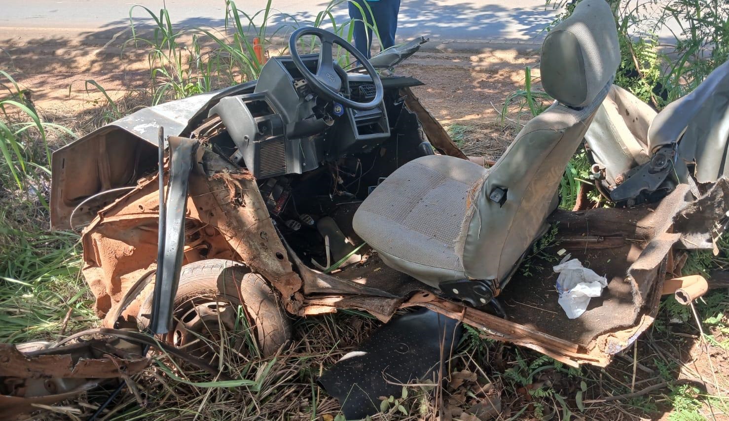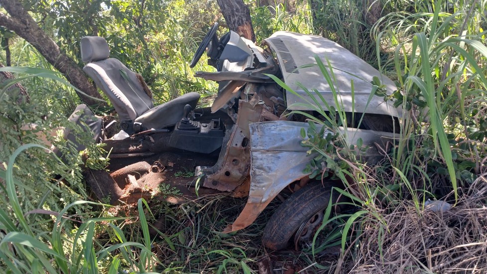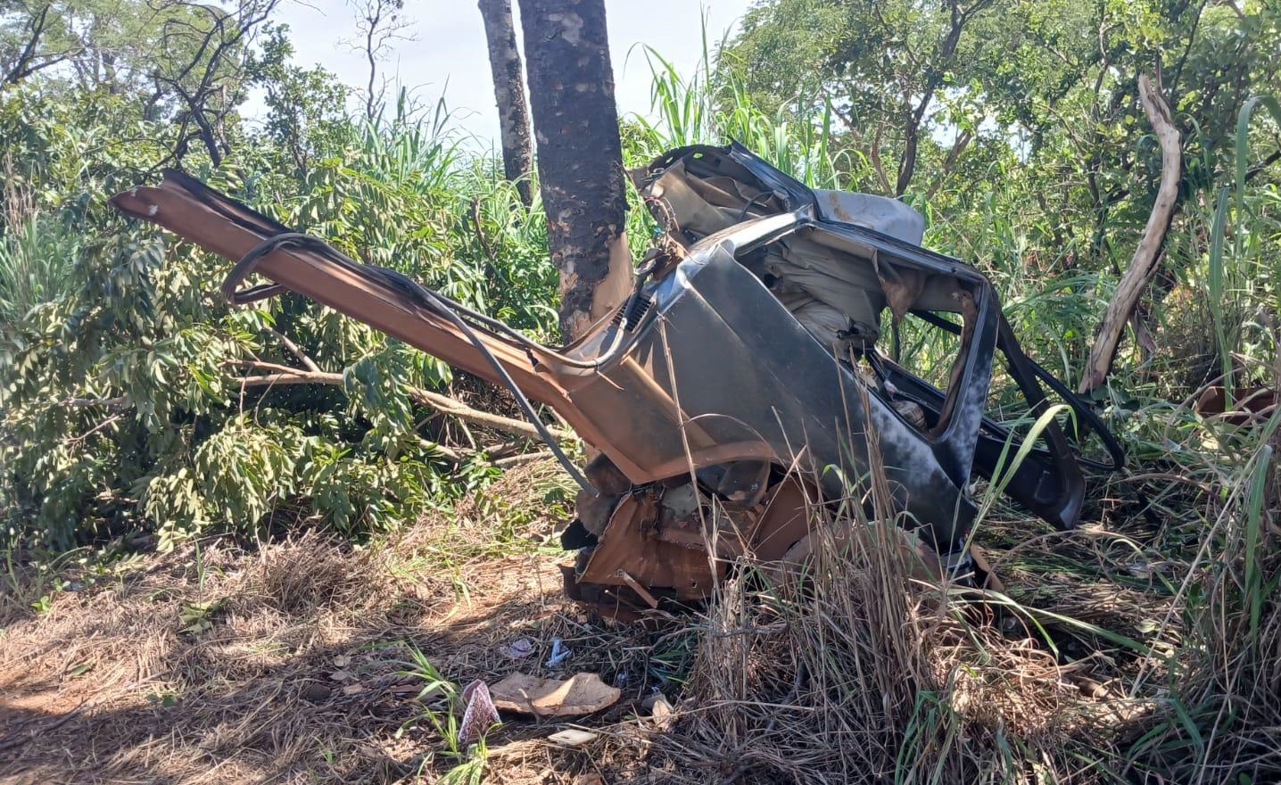 Um motorista de 38 anos ficou gravemente ferido após um acidente na tarde desta terça-feira (10) na MG-188, no município de Unaí. O carro que ele conduzia ficou completamente destruído após sair da pista e bater contra uma árvore.